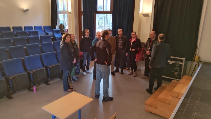 Anschließend füllte sich das neu umbenannte Theater mit Leben: Die Theater-AG überraschte mit einer kurzen Improvisationseinlage und sorgte für Unterhaltung und Applaus. Danach blieb Zeit, das Theater gemeinsam zu erkunden, Erinnerungen zu teilen und neue Ideen zu schmieden. Ein schöner Moment auch für den Sohn der Familie Schmidt, der in seiner Schulzeit am CJD selbst auf der Bühne mitgewirkt hat.