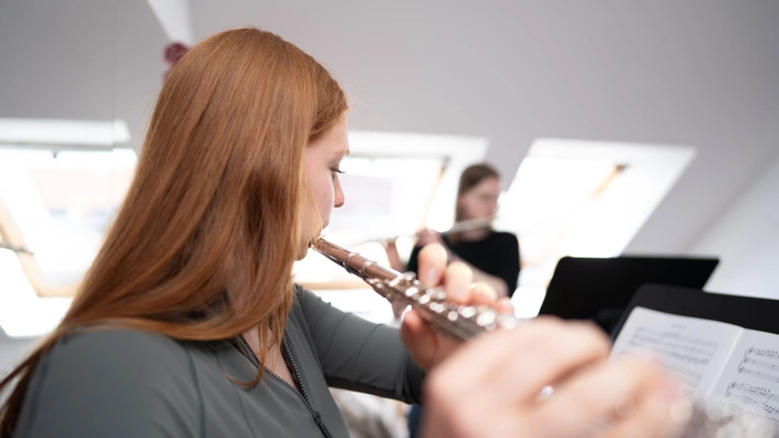 Fortgeschrittene finden bei uns auch die Möglichkeit gemeinsam zu musizieren, zum Beispiel im Querflötenensemble der Akademie. Es werden zusammen Werke von Barock bis Moderne erarbeitet, wobei auch Piccolo, Alt- und Bassquerflöte zum Einsatz kommen.