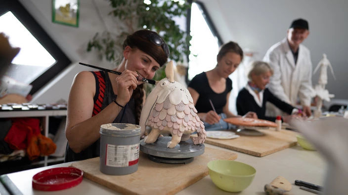 Unter der fachkundigen Anleitung des bekannten Bildhauers Markus Wollenschlaeger entdeckst Du die faszinierende Welt der Keramik. In fröhlicher Gemeinschaft mit den anderen Teilnehmenden modellierst Du aus Ton einzigartige Werke – sei es eine Figur, eine formschöne Schale oder andere Ideen, die Deiner Fantasie entspringen.